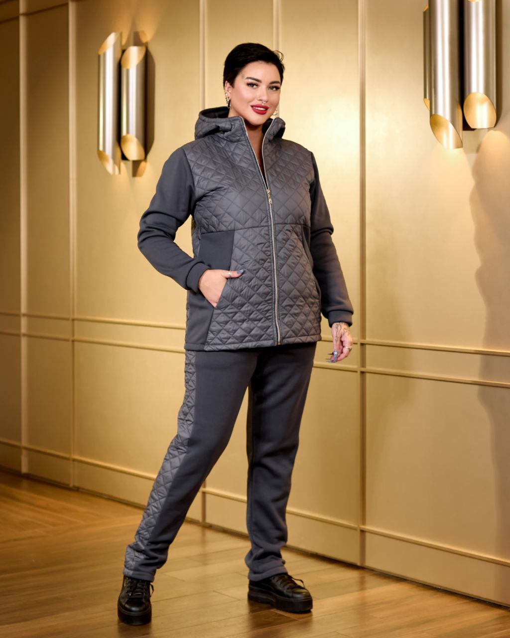 Утеплений жіночий костюм: фліс + плащівка